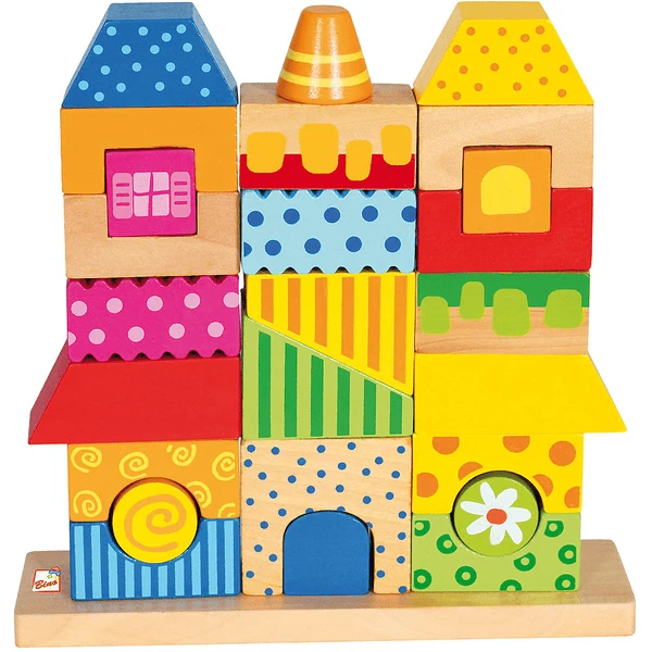Farbenfrohes, 26-teiliges Steckhaus mit vielen unterschiedlich förmigen